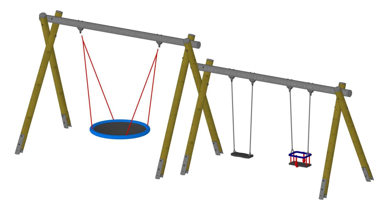 Schaukelbock-Kombination Schaukelbalken Stahlrohr verzinkt